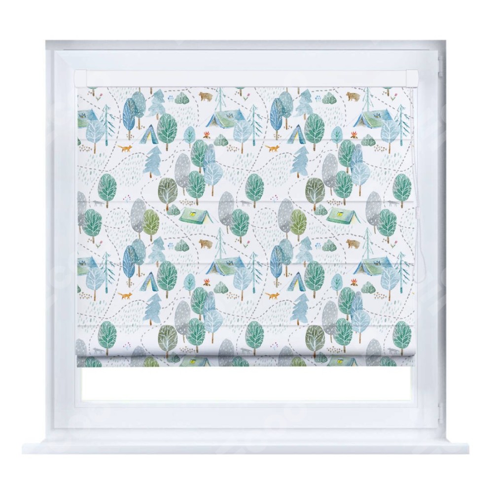 Римская штора производителя «Cortin», устанавливается на створку окна, пошита из ткани блэкаут с нанесением сублимационной печати «Лесистая местность». Штора шьётся по индивидуальным размерам, для данного типа римской шторы возможная ширина от 35 до 150 см., высота до 250 см.