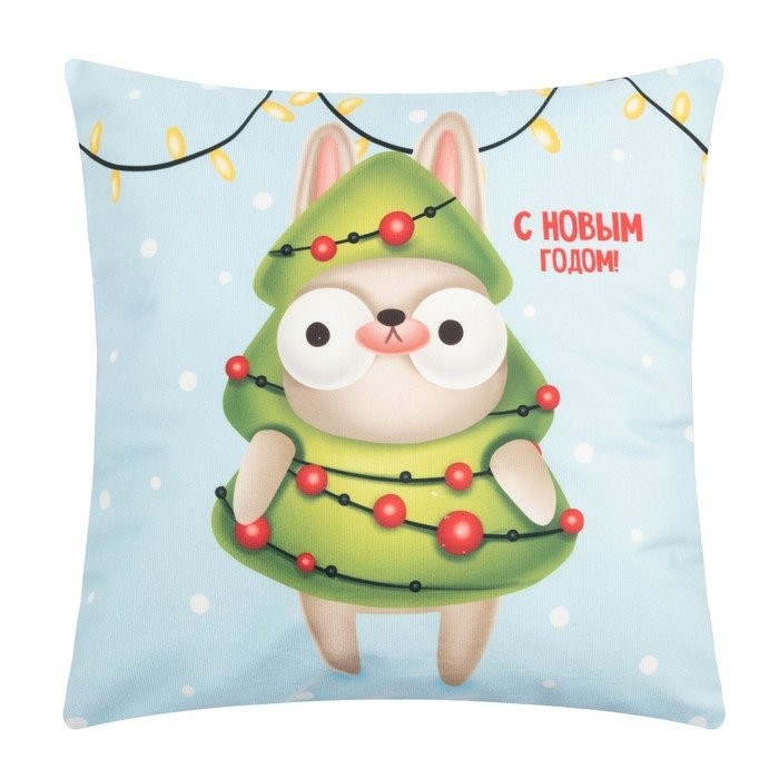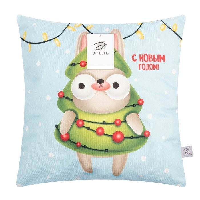 Наволочка на подушку Этель «Зайчик с елкой», 40*40 см, 100 п/э, велюр