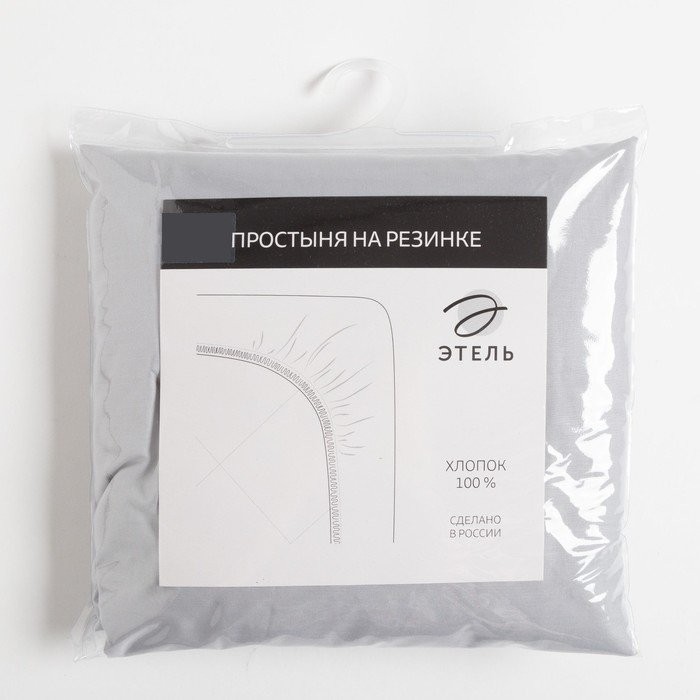 Простыня на резинке «Этель» 180х200×25 см, серый, 100% хлопок, перкаль