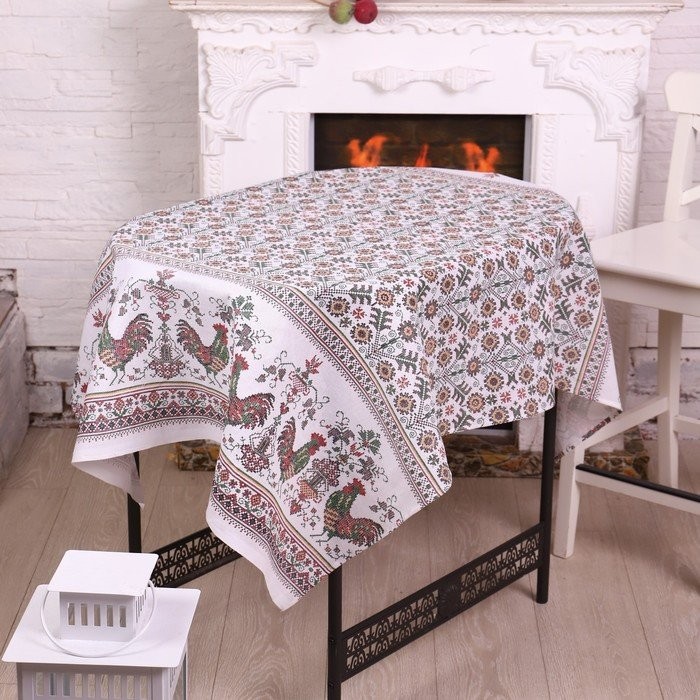 Скатерть 110×150 см «Петушок», зеленый, рогожка, хл 100%