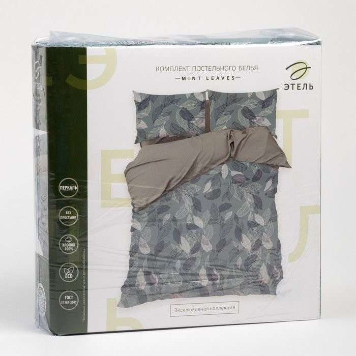 Постельное бельё Этель 2 сп Mint leaves, пододеяльник 175×215 см, наволочки 50×70 см 2 шт, 100% хлопок