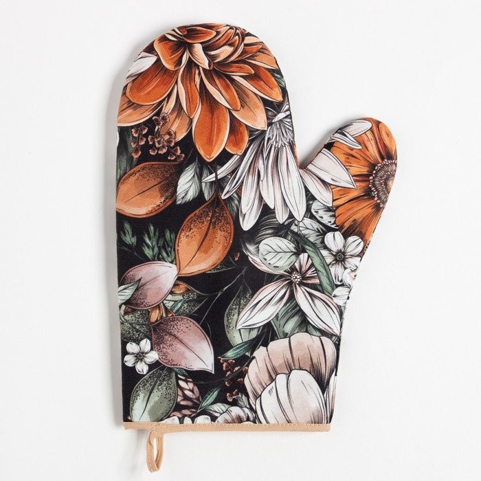 Кухонный набор Этель Meadow flower, варежка-прихватка, прихватка 19×19 см, 100% хлопок