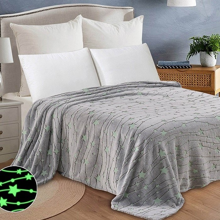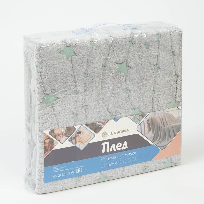 Плед светящийся 180×200 см «Звёзды», велсофт 260г/м