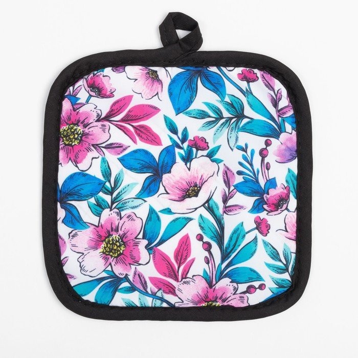 Кухонный набор (2 предмета) Этель «Цветы», прихватка 17×17 см, варежка 26×16 см, 100% п/э