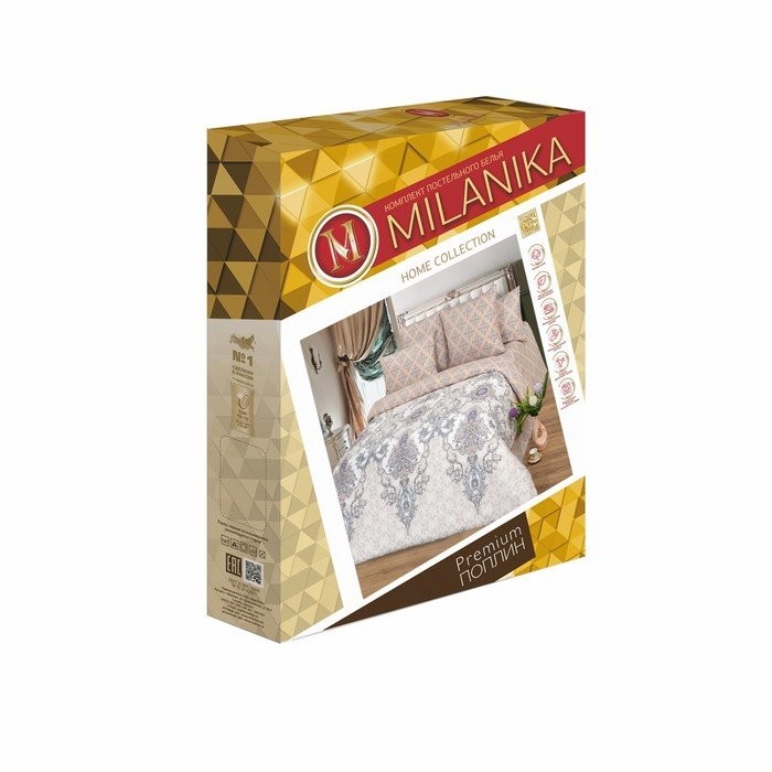 Постельное бельё 1,5сп Миланика Медальон 145х217см, 150х217см, 70х70см 2 шт, поплин 117г/м, хлопок 100%