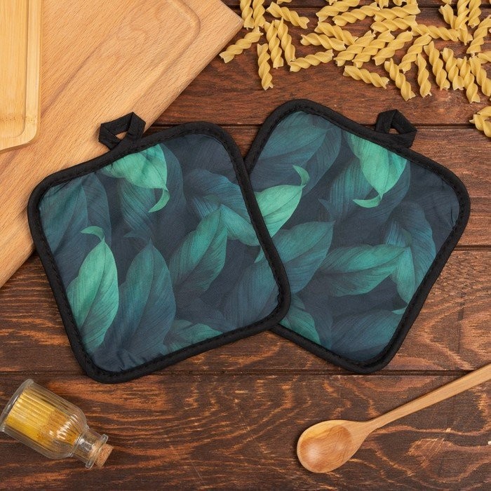 Кухонный набор (2 предмета) Этель «Листья», прихватка 17×17 см, 100% п/э