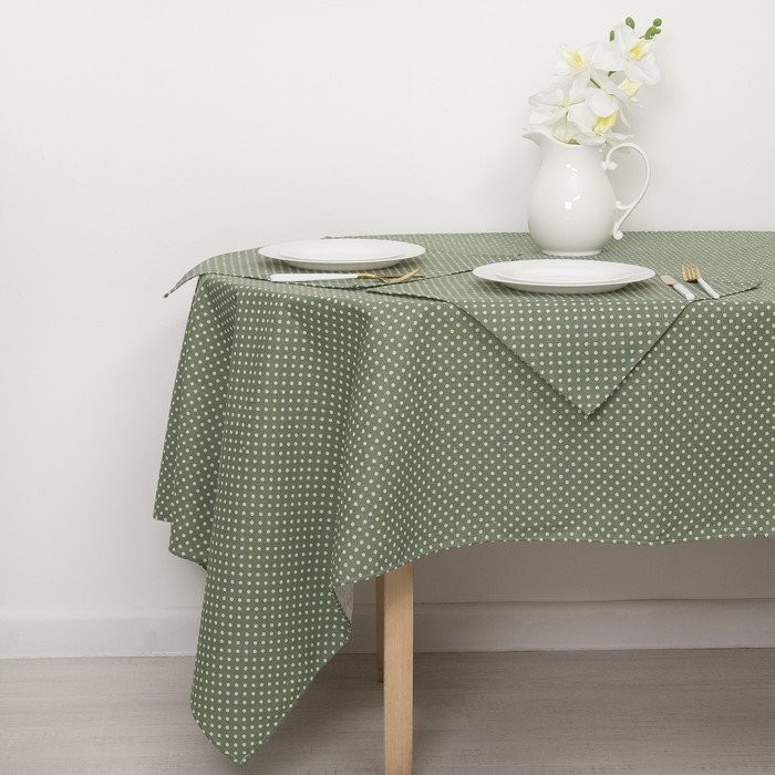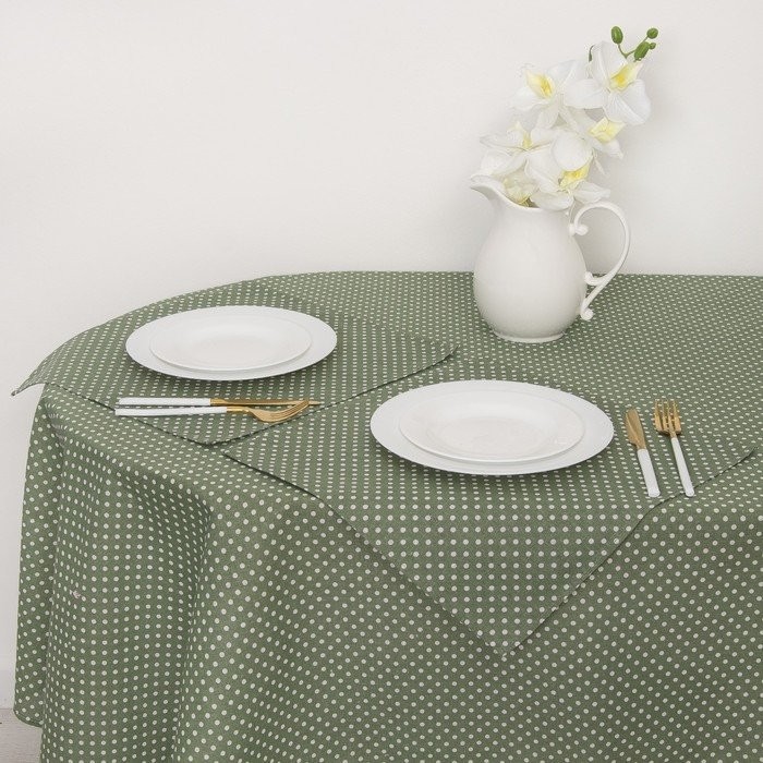 Набор Доляна скатерть 145х200см/салфетки 40х40см 4шт, Горох цв.зеленый, 100%пэ