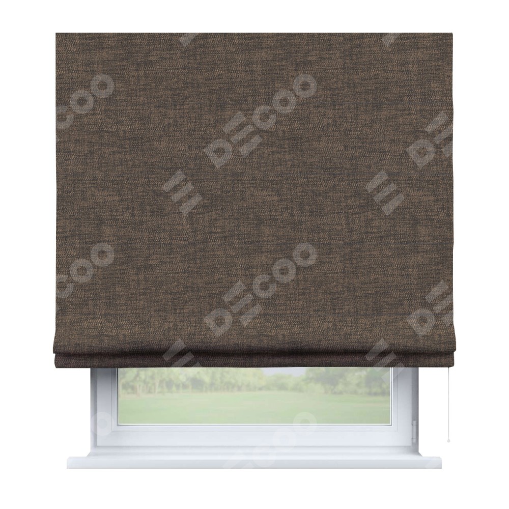 Римская штора производителя «Cortin», используется для проёма, пошита из ткани рогожка димаут коричневый, артикул ткани 80420. Имеет универсальный механизм и подходит для монтажа: на потолок, на стену и в нишу.