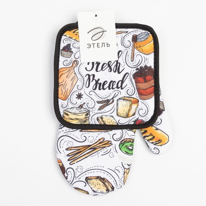 Кухонный набор (2 предмета) Этель Fresh bread, прихватка 17×17 см, варежка 26×16 см, 100% п/э
