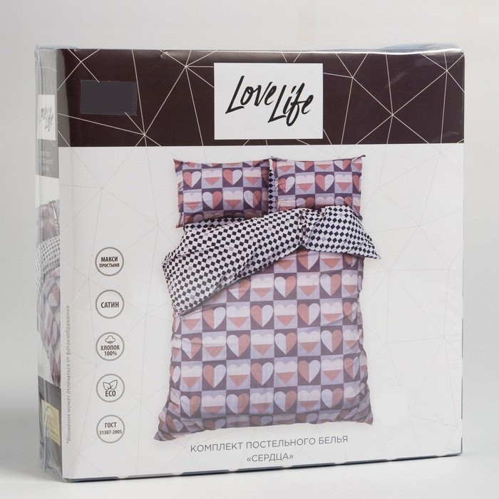 Постельное бельё LoveLife 2 сп «Сердца» 175х215см, 200х225см, 50х70см-2шт