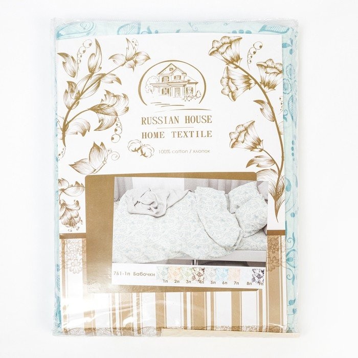Постельное бельё 1,5сп Русский дом «Бабочки синий» 145×215, 150×215, 70х70см 2 шт, бязь 120г/м