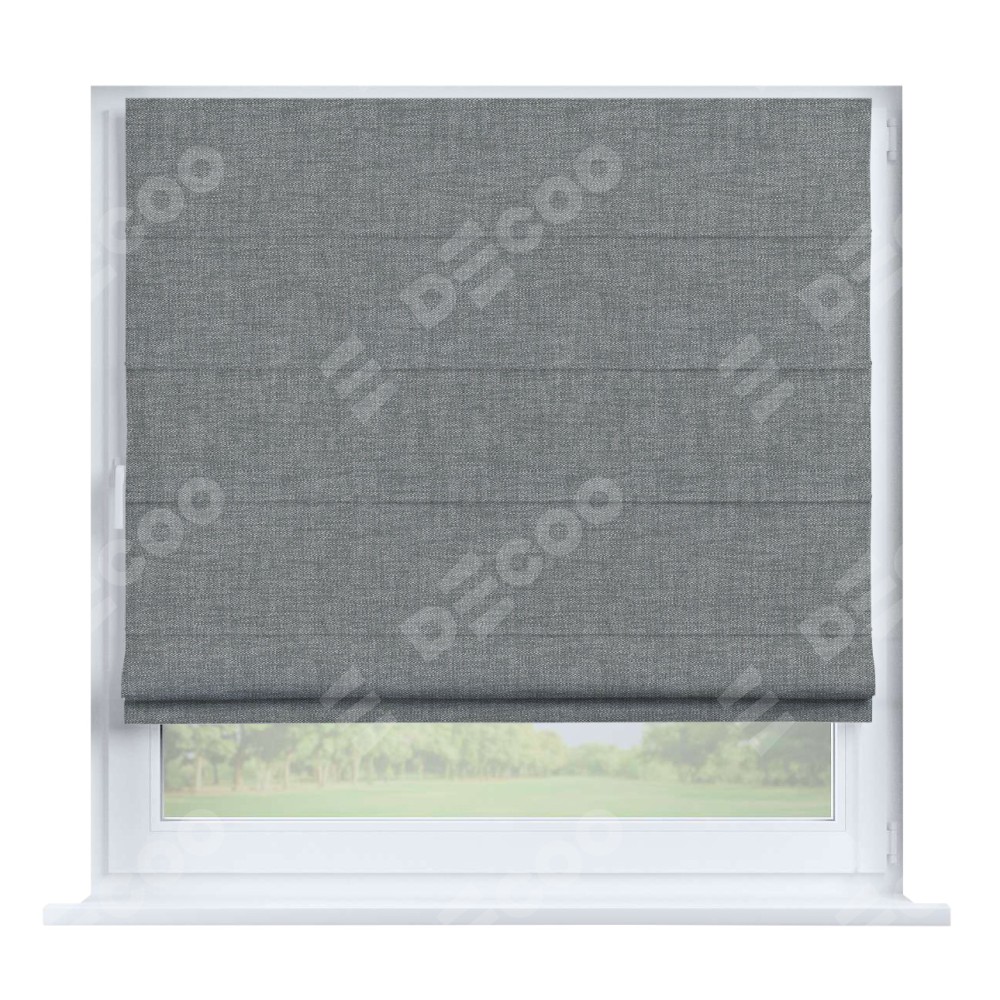 Римская штора производителя «Cortin», устанавливается на створку окна, пошита из ткани рогожка димаут тёмно-серый, артикул 80418. Штора шьётся по индивидуальным размерам, для данного типа римской шторы возможная ширина от 35 до 150 см., высота до 250 см.