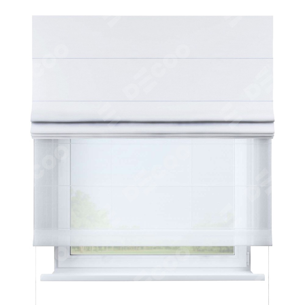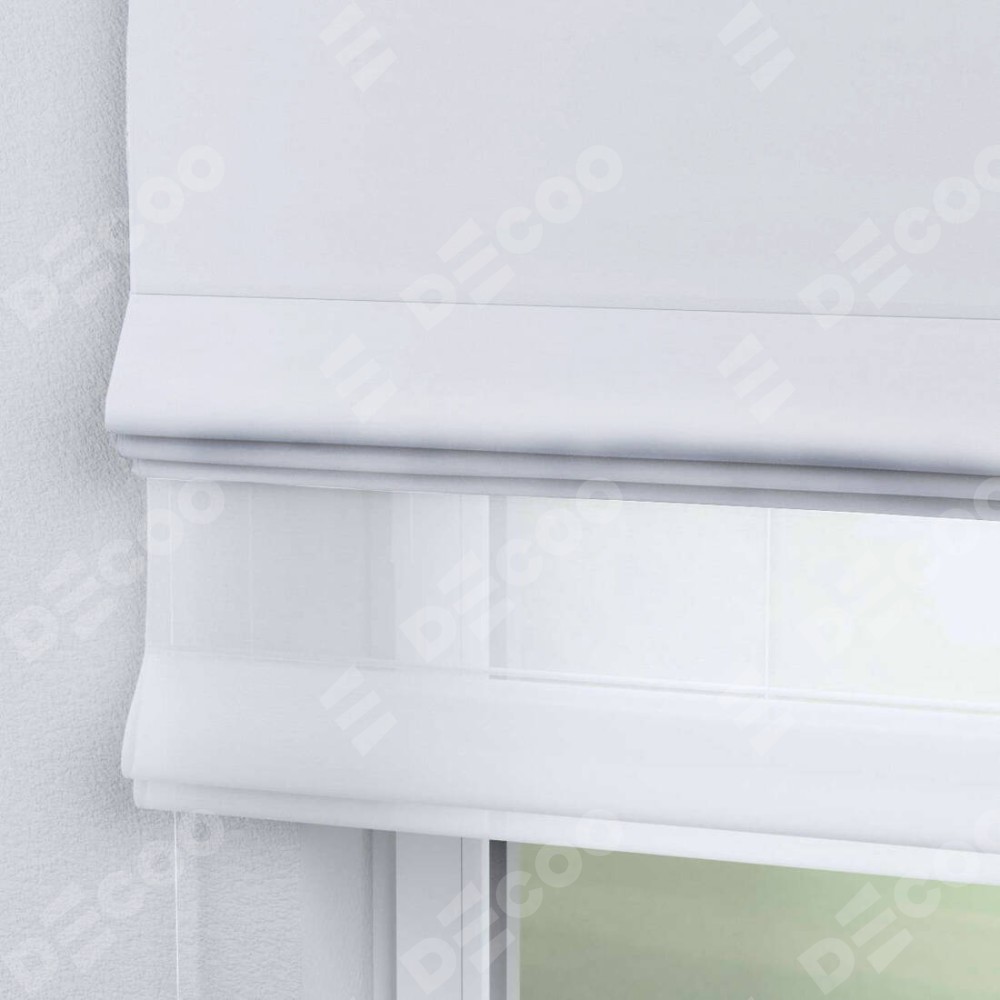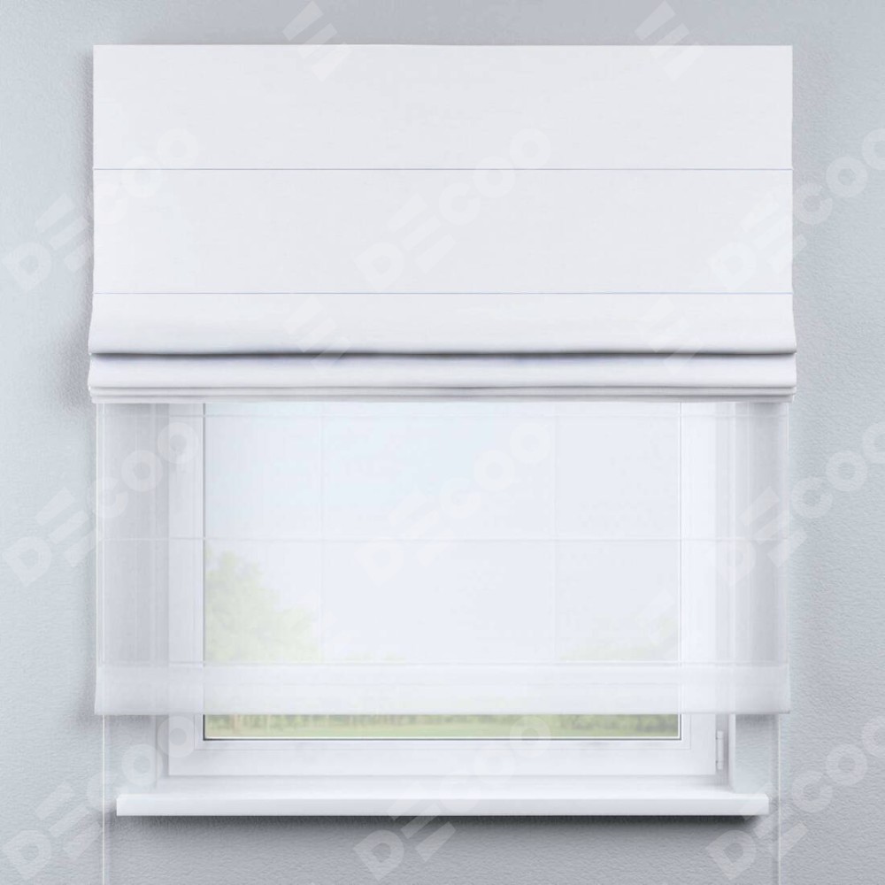Римская штора день-ночь производителя «Cortin», используется для проёма, пошита из двух полотен, с лицевой стороны вельвет дымчато-белый артикул 85535, вторая ткань тюль (по стандарту комплектуется тюль белого цвета артикул V-01). Имеет универсальный механизм и подходит для монтажа: на потолок, на стену и в нишу.