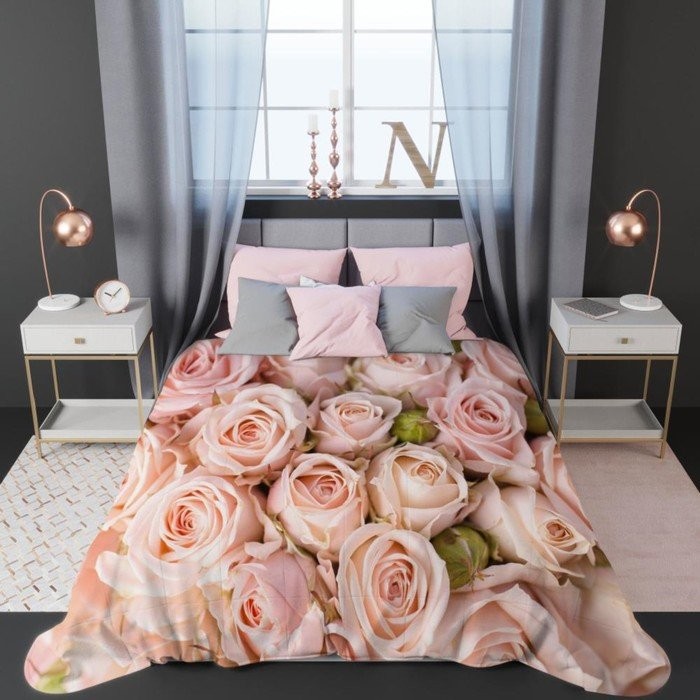 Покрывало стеганое «Розовые розы», размер 200×220 см
