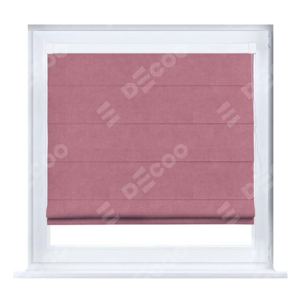 Римская штора производителя «Cortin», устанавливается на створку окна, пошита из ткани вельвет брусника, артикул 85550. Штора шьётся по индивидуальным размерам, для данного типа римской шторы возможная ширина от 35 до 150 см., высота до 250 см.