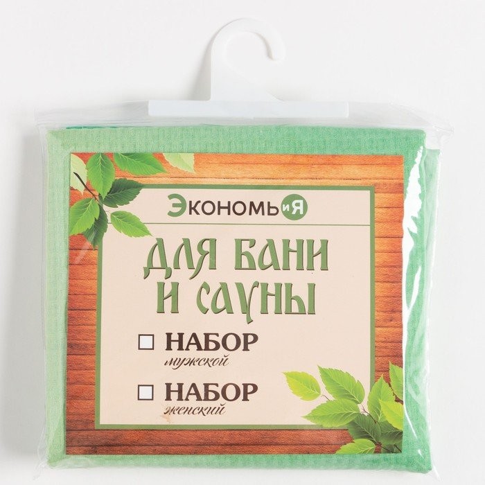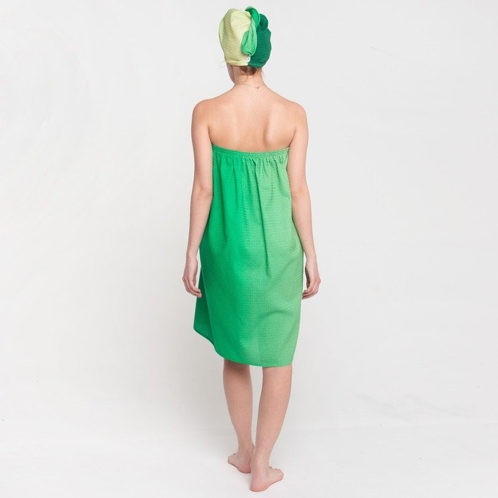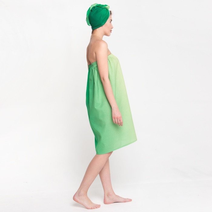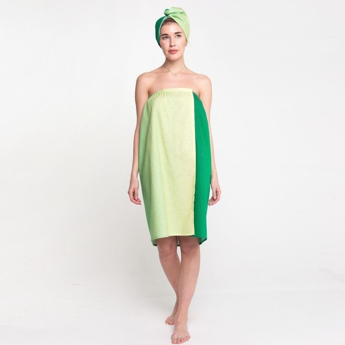 Набор для сауны Экономь и Я «Лайм» (полотенце-парео + чалма) 100%хл, 200 г/м2