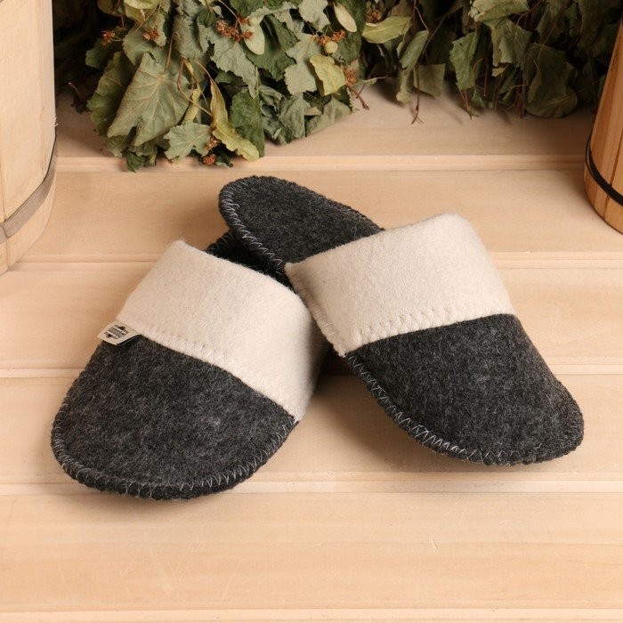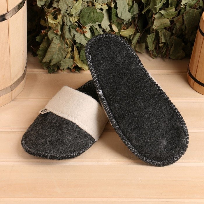 Тапочки для бани серые с отворотом (26 см внутр. стелька)