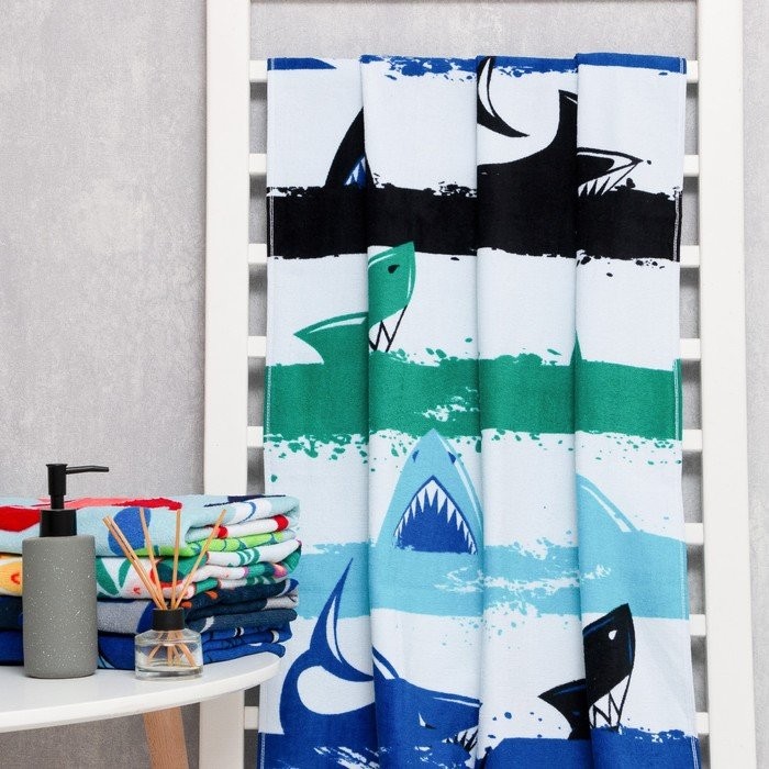 Полотенце Love Life «Акулы» 70*140 см, велюр/махра 340гр/м2, 100% хлопок