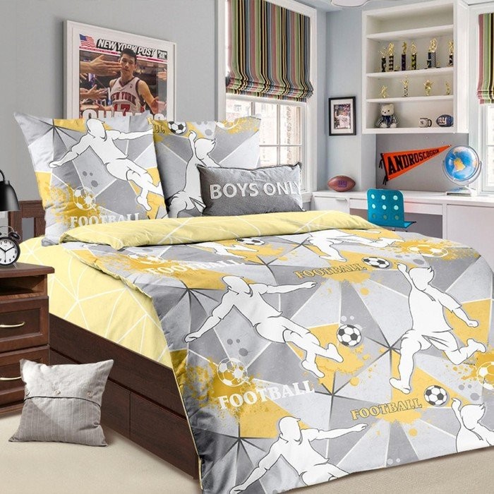 Постельное бельё 1,5сп ЛидерТекс Футбол 145×215, 150×215, 70×70 1шт, бязь 120гр/м хл100%