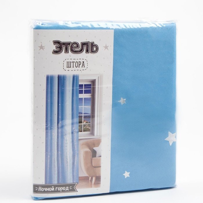 Портьера Этель «Ночной город» без держателя, цвет голубой, 170×260 см, блэкаут, 100% полиэстер