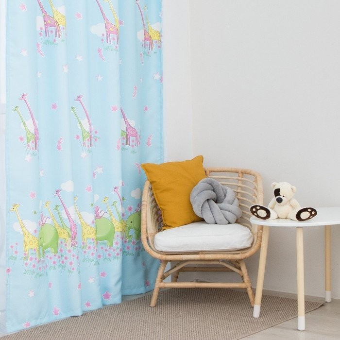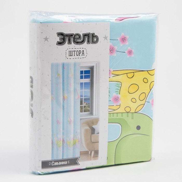 Портьера Этель «Саванна» без держателя, цвет голубой, 110×260 см, блэкаут, 100% полиэстер