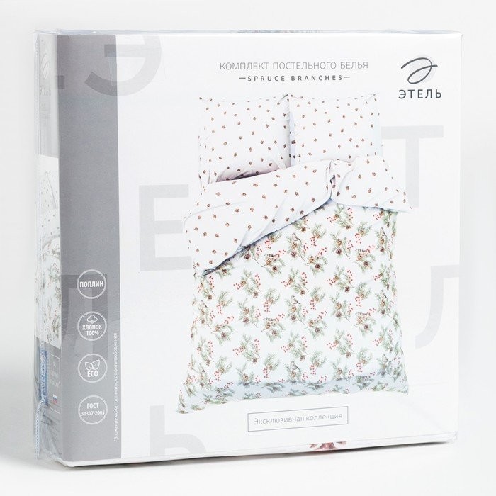 Постельное бельё Этель Евро Spruce branches 200×217 см, 220×240 см, 70×70 см -2 шт, поплин 125 г/м2