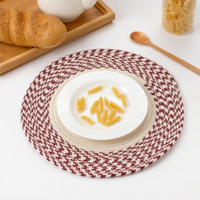 Салфетка декоративная «Доляна» цв.молочно-бордовый, 35*35 см, 100% хлопок