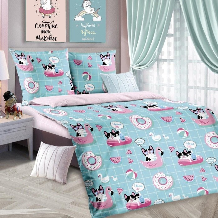 Постельное бельё 1,5сп ЛидерТекс Каникулы 145×215, 150×215, 70×70 1шт, бязь 120гр/м хл100%