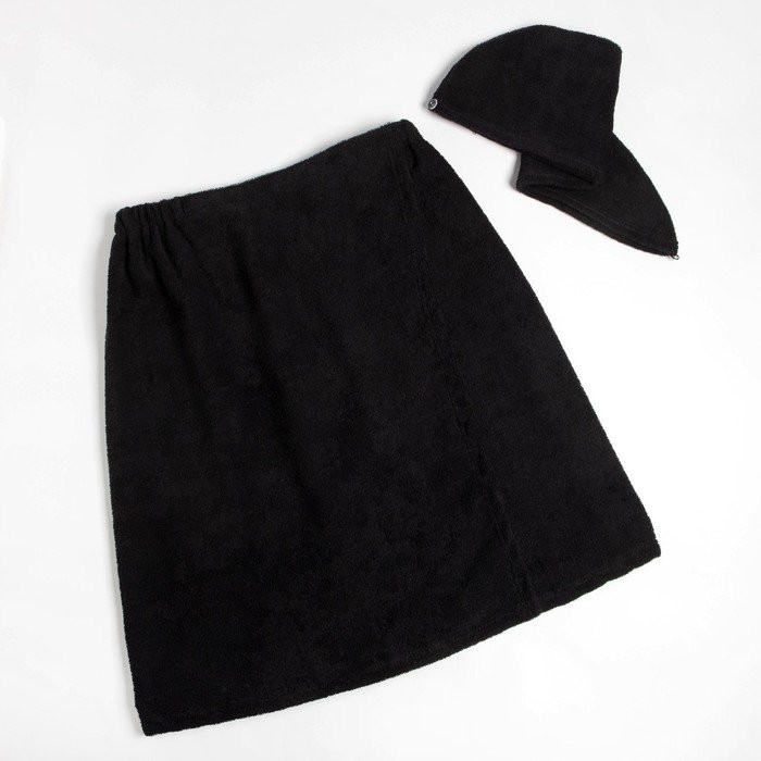 Набор для сауны Экономь и Я: полотенце-парео 68*150см + чалма, цв.черный, 100%хл, 320 г/м2