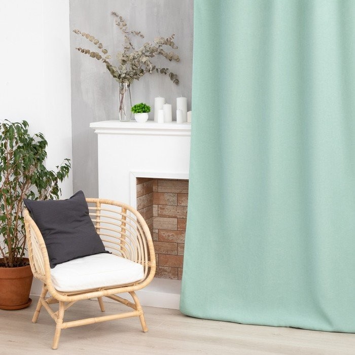 Штора портьерная Этель «Структурная», цвет светло зелёный, на шторной ленте, 145×265 см, 100% п/э