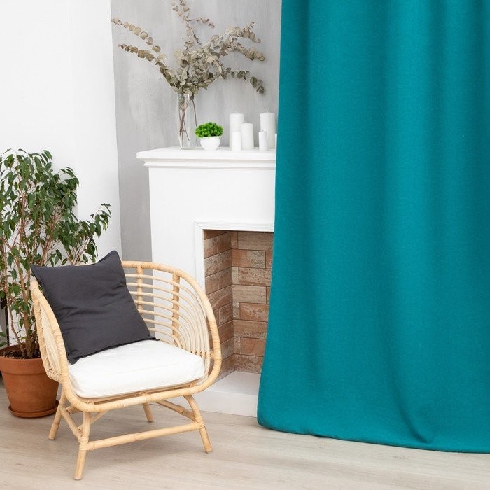 Штора портьерная Этель «Структурная», цвет синий, на шторной ленте, 270×300 см, 100% п/э