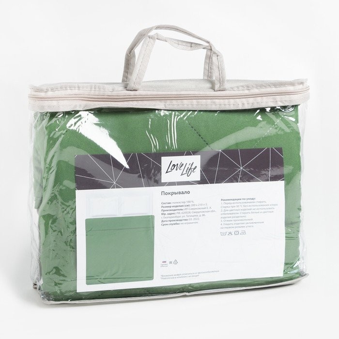 Покрывало LoveLife 2 сп 180×210±5 см, цвет зелёный, микрофайбер, 100% п/э