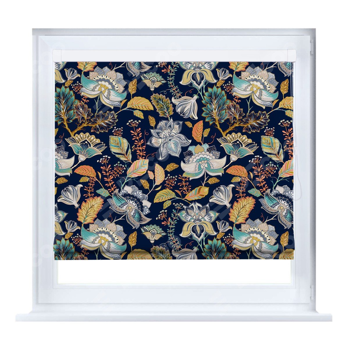 Римская штора кассетного типа, производителя «Cortin», устанавливается только на пластиковые окна и прилегает к стеклопакету, пошита из ткани блэкаут с нанесением сублимационной печати «Тёмный букет».