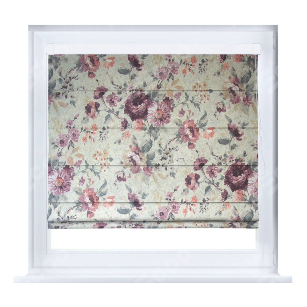 Римская штора производителя «Cortin», устанавливается на створку окна, пошита из ткани «Пионы». Штора шьётся по индивидуальным размерам, для данного типа римской шторы возможная ширина от 35 до 150 см., высота до 250 см.
