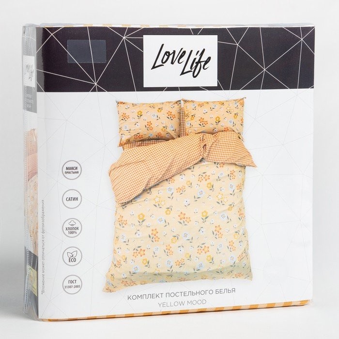 Постельное бельё LoveLife 1, 5сп Yellow mood 143х215см, 150х225см, 50х70см-2шт, 100%хлопок, сатин, 125г/м²