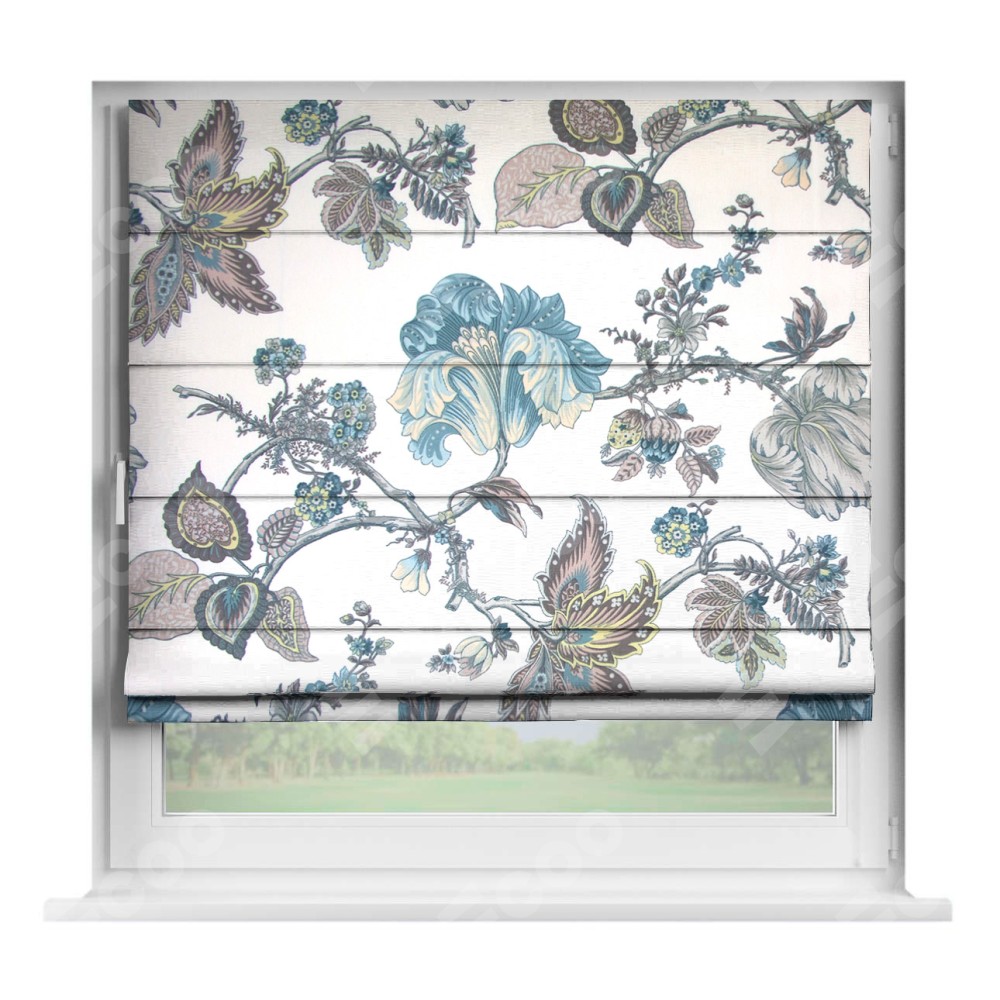 Римская штора производителя «Cortin», устанавливается на створку окна, пошита из ткани «Каприз». Штора шьётся по индивидуальным размерам, для данного типа римской шторы возможная ширина от 35 до 150 см., высота до 250 см.
