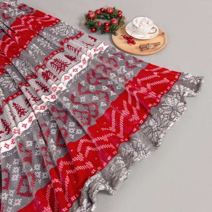 Плед LoveLife «Новогодний узор» 180×200 см,100% п/э, велсофт 280 гр/м2