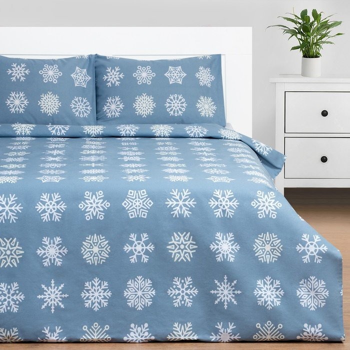 Комплект: пододеяльник и 2 наволочки «Снежинки» 143×215 см, 50×70 см — 2 шт, 100% хлопок