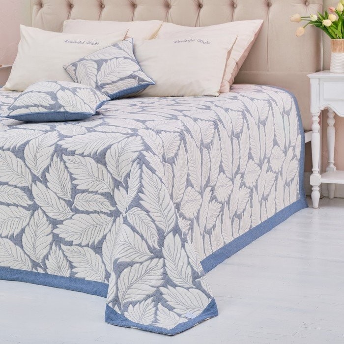 Покрывало хлопковое Этель «Листопад» 180×240 см, цвет синий, 100% хлопок, 300гр/м2