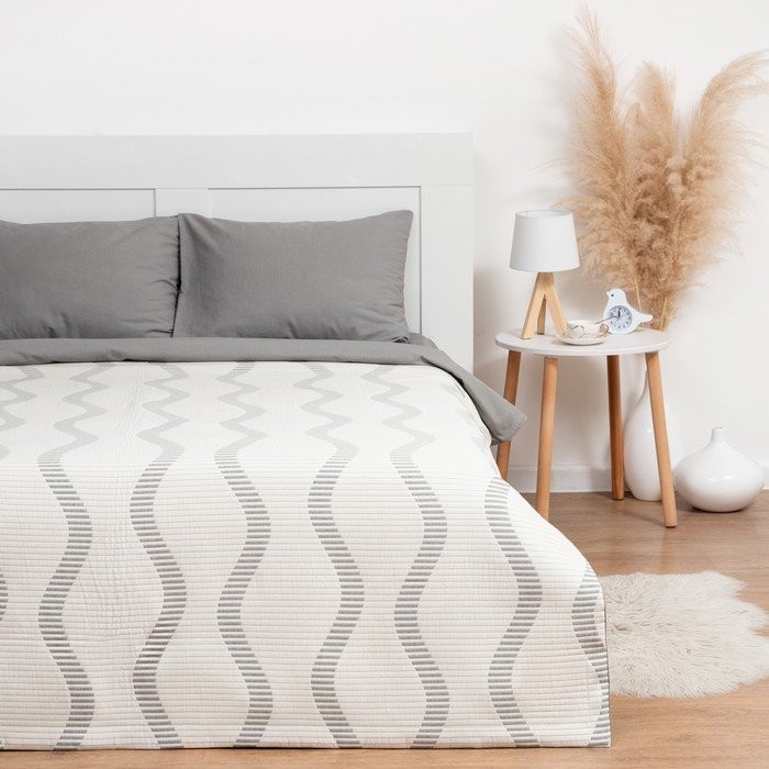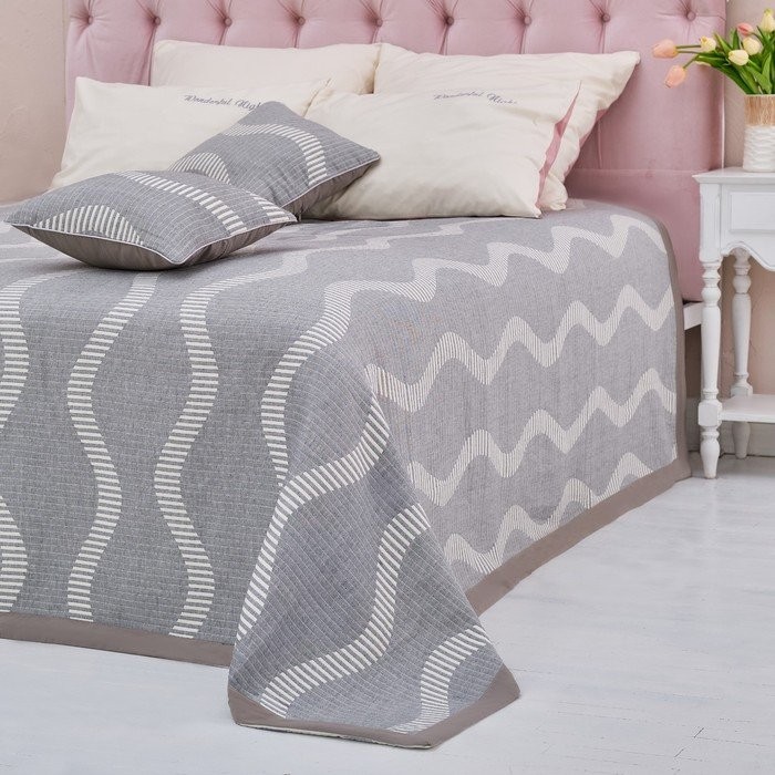 Покрывало хлопковое Этель «Волны» 220×240 см, цвет серый, 100% хлопок, 300гр/м2