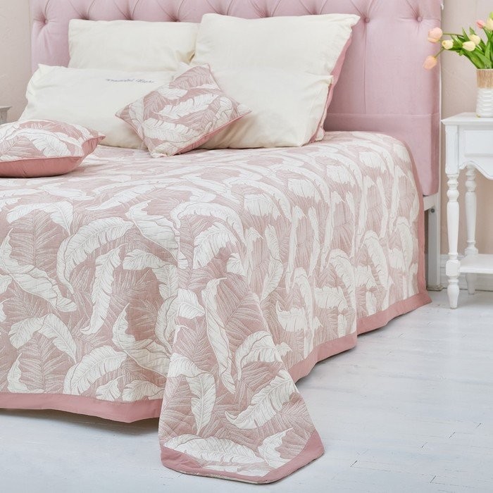 Покрывало хлопковое Этель «Перья» 150×240 см, цвет бежевый, 100% хлопок, 300гр/м2