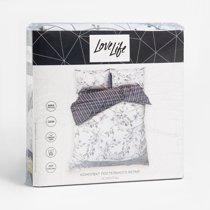 Постельное бельё LoveLife Евро «Сакура» 200×217 см, 225×240 см, 50х70см-2шт,100%хлопок,сатин,125г/м²