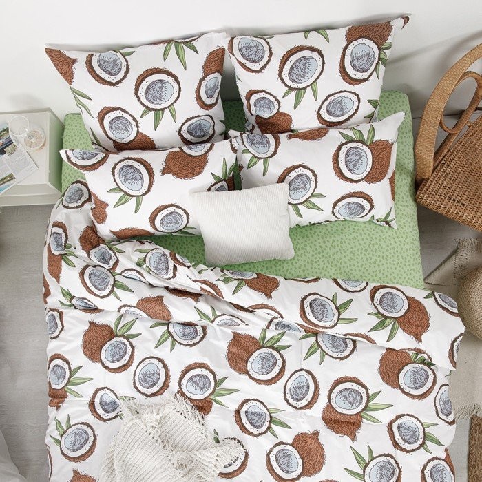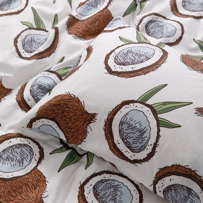 Постельное бельё Евро Ночь Нежна Кокосы 220×200 см, 220×200 см, 70×70 см 2шт, бязь, 120г/м², 100% хлопок