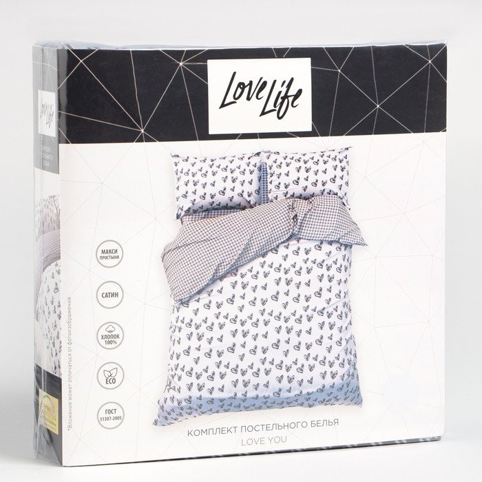 Постельное белье LoveLife Love you 1,5 спальное, 150×225 см, сатин