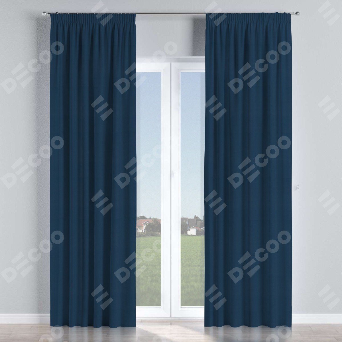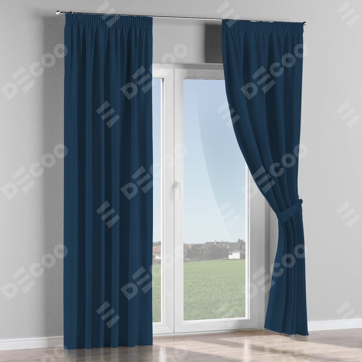 Комплект прямых штор, от производителя «Cortin», пошиты из ткани блэкаут однотонный синий, артикул ткани 29327. С изнаночной стороны в верхней части штор пристрачивается шторная лента с декоративными складками «Карандаш». Для создания элегантных складок прямые шторы шьются по стандарту с коэффициентом 1:2 (на 100 см. ширины проёма 200 см. ширины ткани).