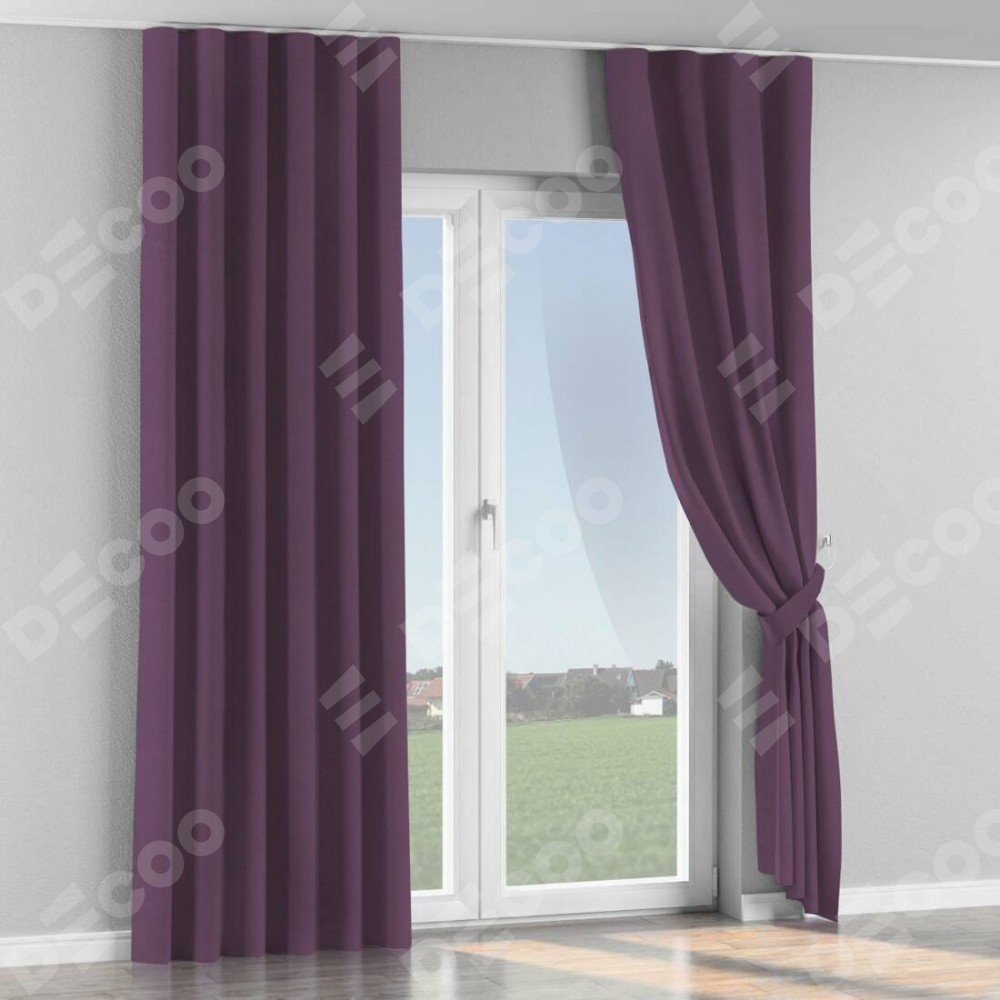 Комплект прямых штор, от производителя «Cortin», пошиты из ткани блэкаут однотонный фуксия, артикул ткани 88303. С изнаночной стороны в верхней части штор пристрачивается шторная лента с декоративными складками «Волна». Для создания элегантных складок прямые шторы шьются по стандарту с коэффициентом 1:2 (на 100 см. ширины проёма 200 см. ширины ткани).