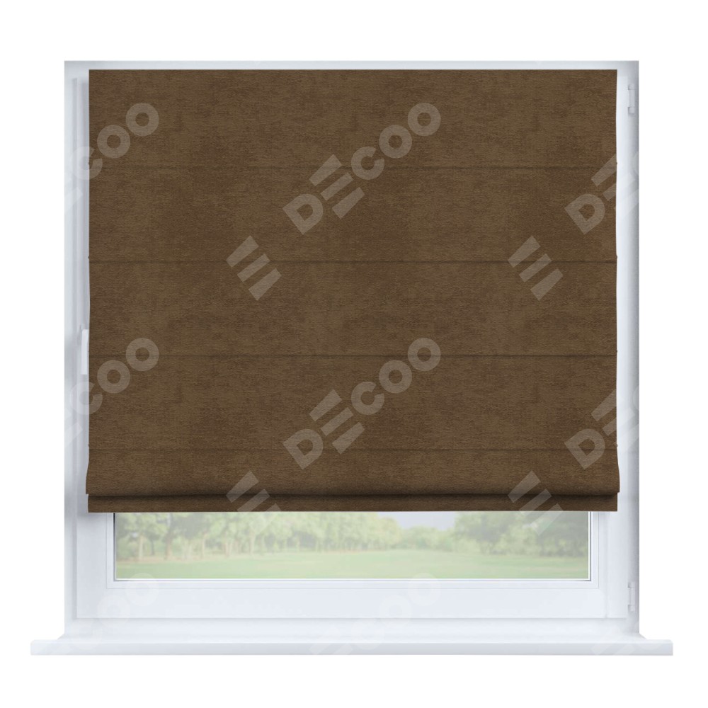 Римская штора производителя «Cortin», устанавливается на створку окна, пошита из ткани софт однотонный бронзовый, артикул 33099. Штора шьётся по индивидуальным размерам, для данного типа римской шторы возможная ширина от 35 до 150 см., высота до 250 см.
