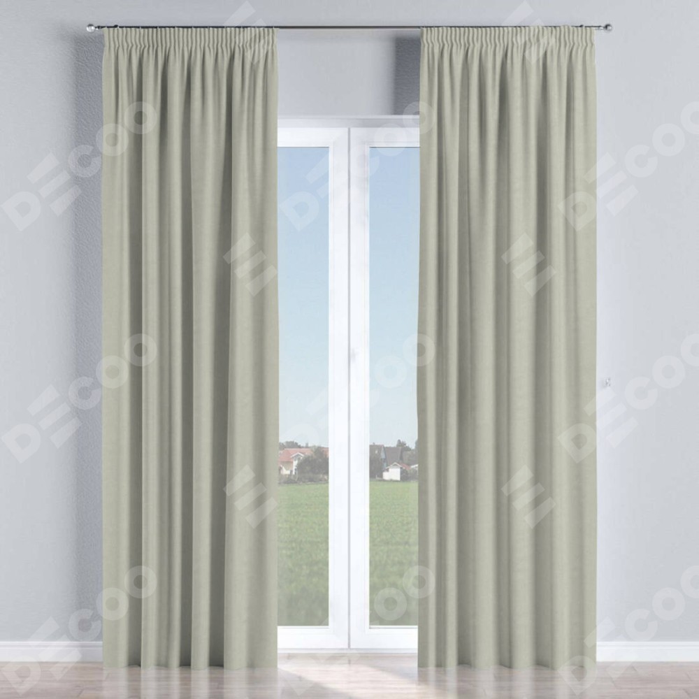 Комплект прямых штор, от производителя «Cortin», пошиты из ткани лён димаут светло-серый, артикул ткани 83025. С изнаночной стороны в верхней части штор пристрачивается шторная лента с декоративными складками «Карандаш». Для создания элегантных складок прямые шторы шьются по стандарту с коэффициентом 1:2 (на 100 см. ширины проёма 200 см. ширины ткани).