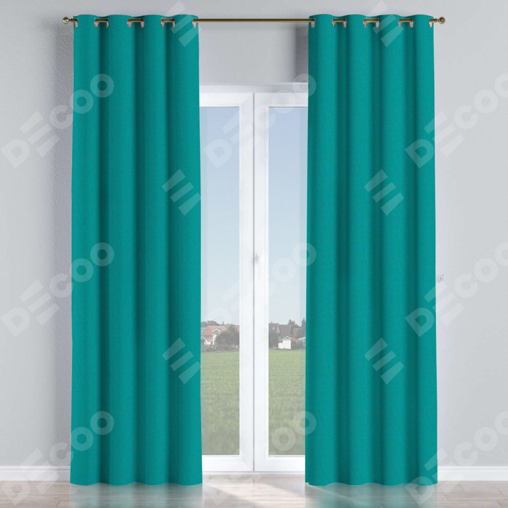 Комплект прямых штор, от производителя «Cortin», пошиты из ткани лён димаут тёмно-бирюзовый, артикул ткани 318. Данная модель пошита на люверсах, комплектуется на выбор круглым карнизом и подходит для монтажа на стену или потолок. Прямые шторы на люверсах шьются по стандарту с коэффициентом 1/2 (на 100 см. ширины проёма 200 см. ширины ткани), отличительным преимуществом данной модели является простой способ монтажа. Достаточно повесить ее на трубу и штора готова!