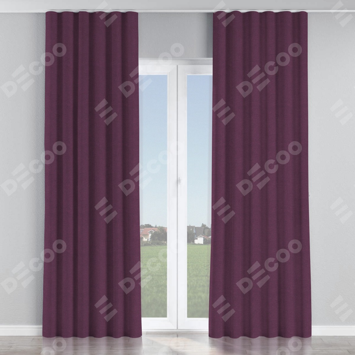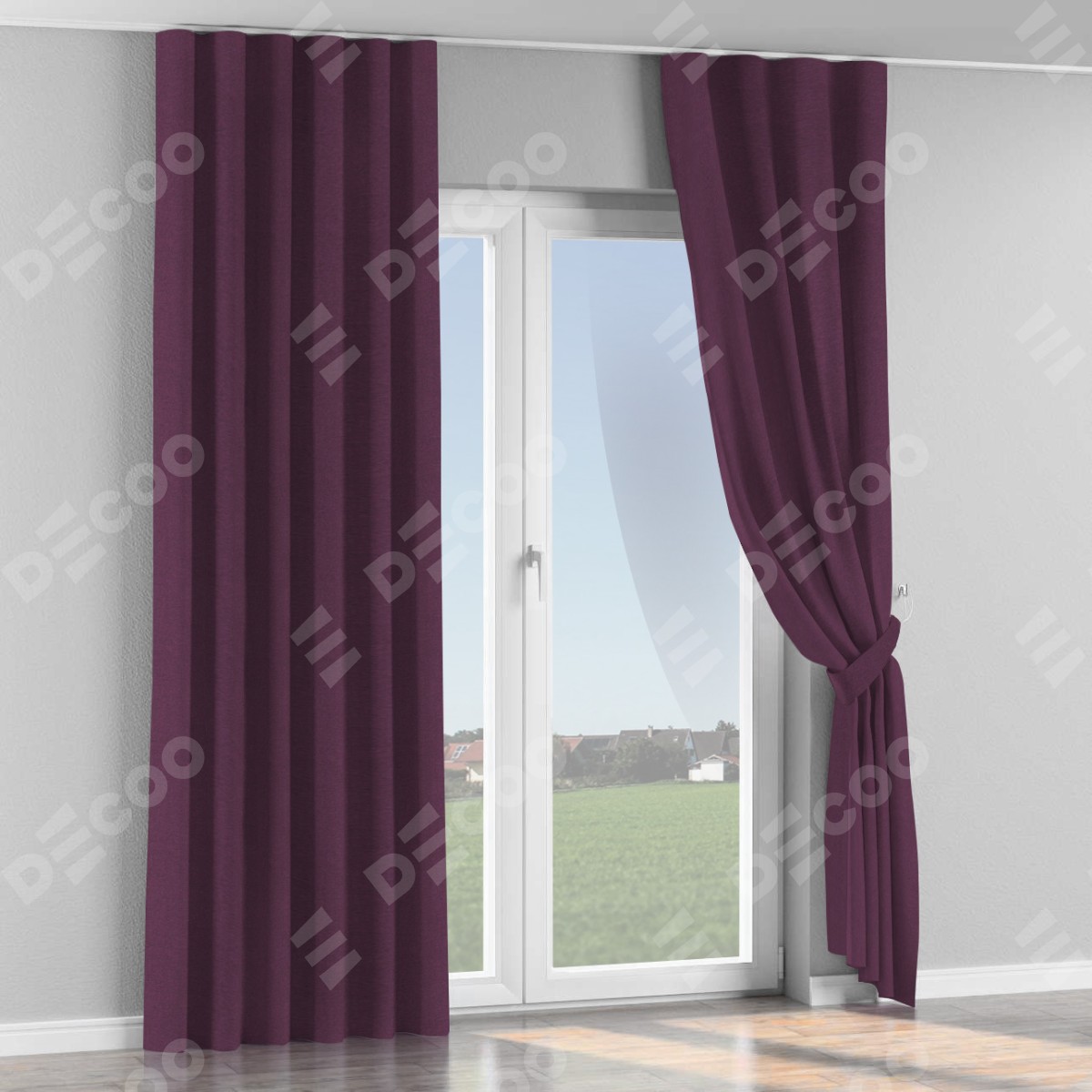 Комплект прямых штор, от производителя «Cortin», пошиты из ткани лён димаут фиолетовый, артикул ткани 8817. С изнаночной стороны в верхней части штор пристрачивается шторная лента с декоративными складками «Волна». Для создания элегантных складок прямые шторы шьются по стандарту с коэффициентом 1:2 (на 100 см. ширины проёма 200 см. ширины ткани).